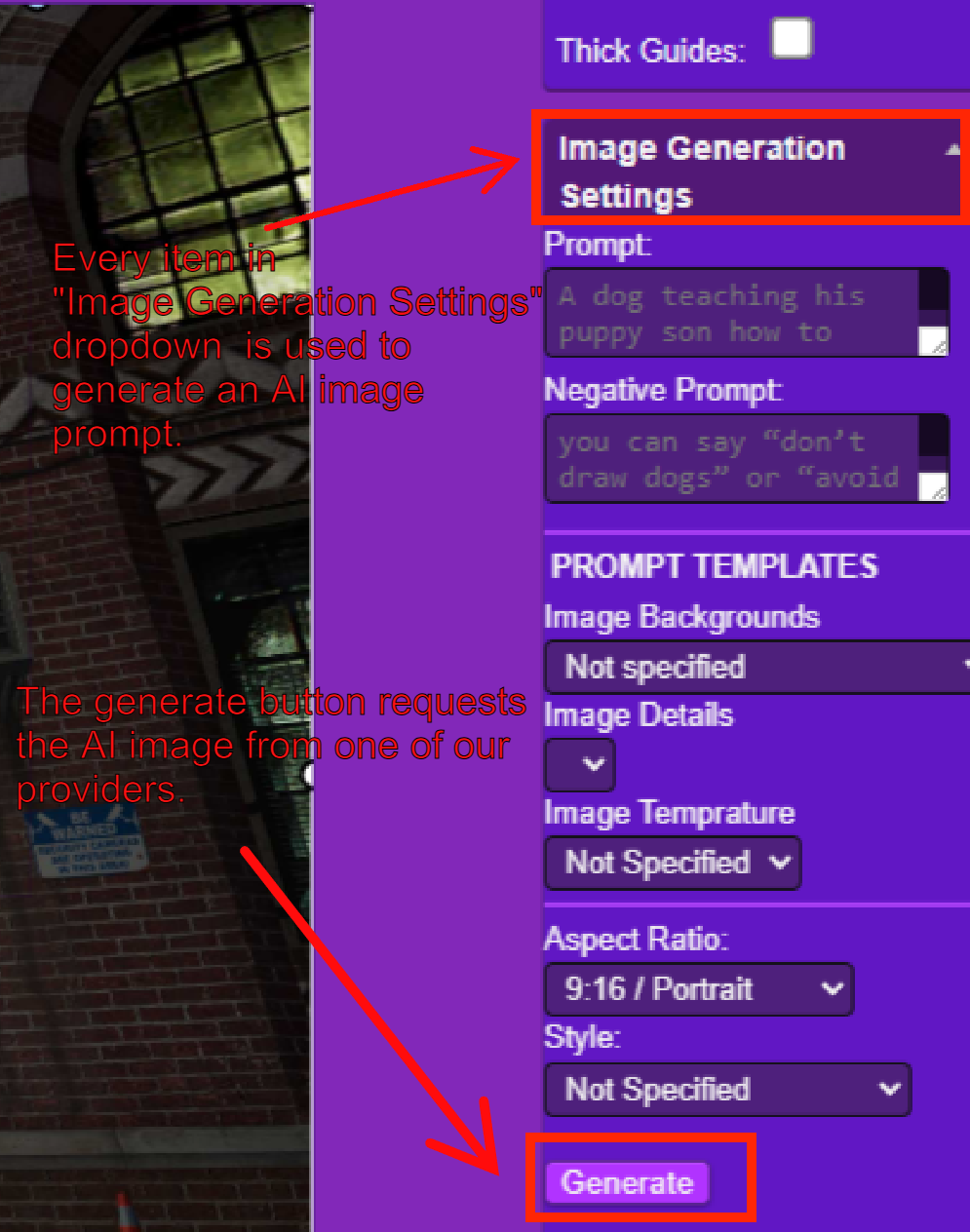 Much of the app’s general functionality and image settings happen here.