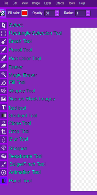 | Paint Bucket | Fill | Fill with color |